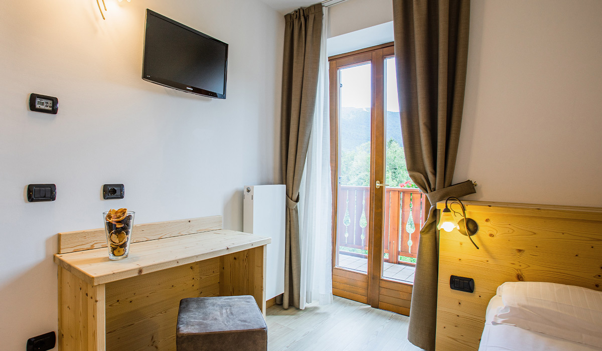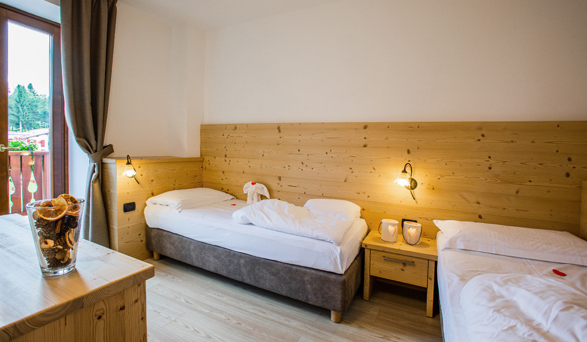 Le Family Room Primula sono caratterizzate da un’ampia metratura, dal balcone panoramico e possono ospitare fino a 5 posti letto. Disponiamo di Family Room su un solo livello, formate da una camera matrimoniale con possibilità di aggiunta di un letto singolo e, adiacente, di una camera a due letti.
