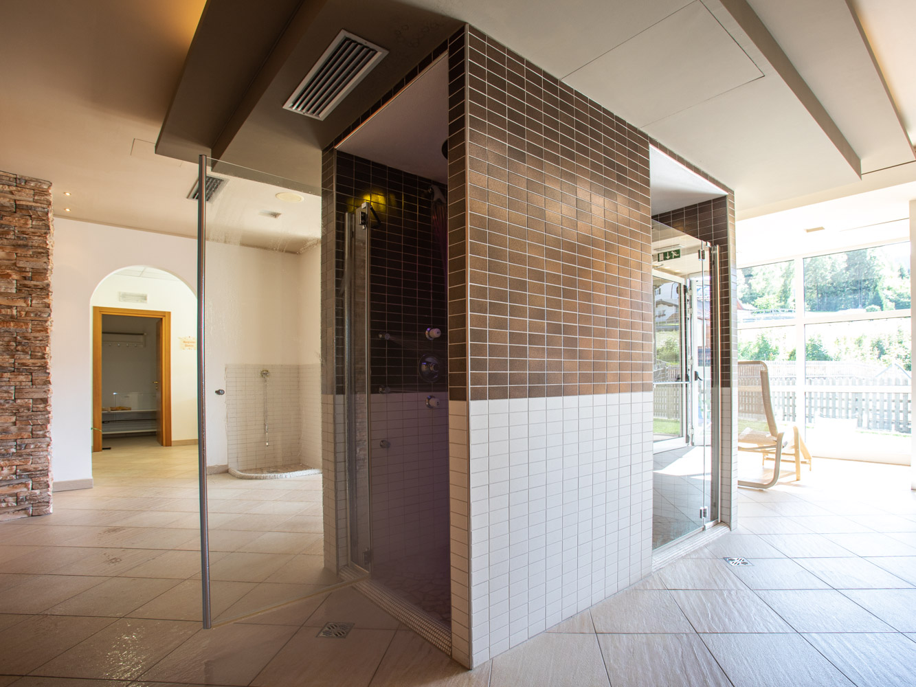 Mugo, pino, timo e menta: i freschi profumi della montagna si uniscono al piacevole rumore dell’acqua e alle luci rilassanti all’interno della nostra doccia rivitalizzante. Getto caldo o nebbia fredda, colori e profumi vi regaleranno un’inedita sensazione di benessere ed equilibrio.
