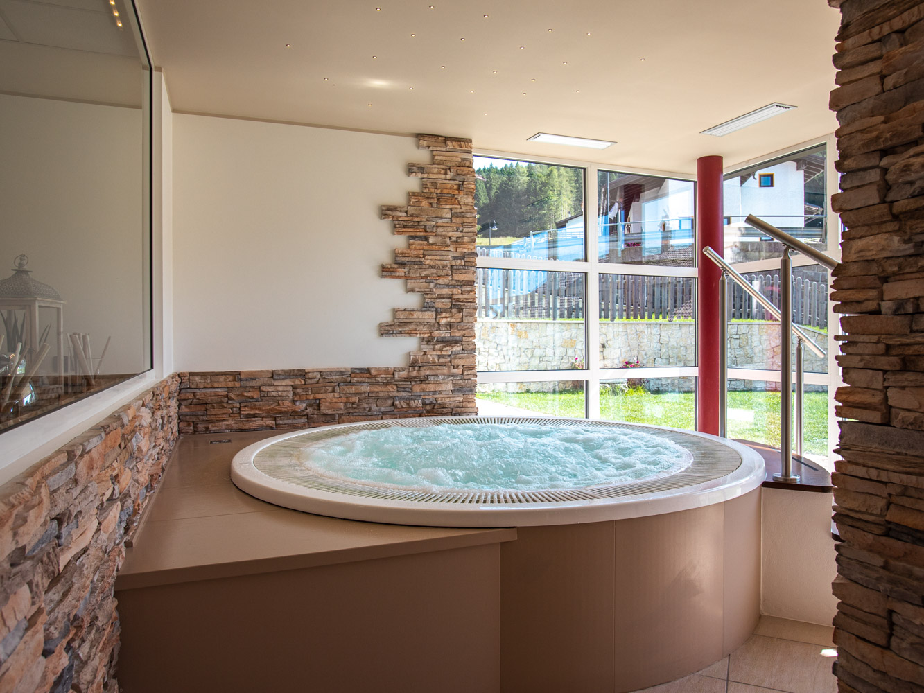 Una vasca di acqua calda che ribolle allenta tutti i pensieri: il nostro idromassaggio con seduta anatomica può ospitare fino a 4 o 5 persone e garantisce relax assoluto… Dalla testa ai piedi.